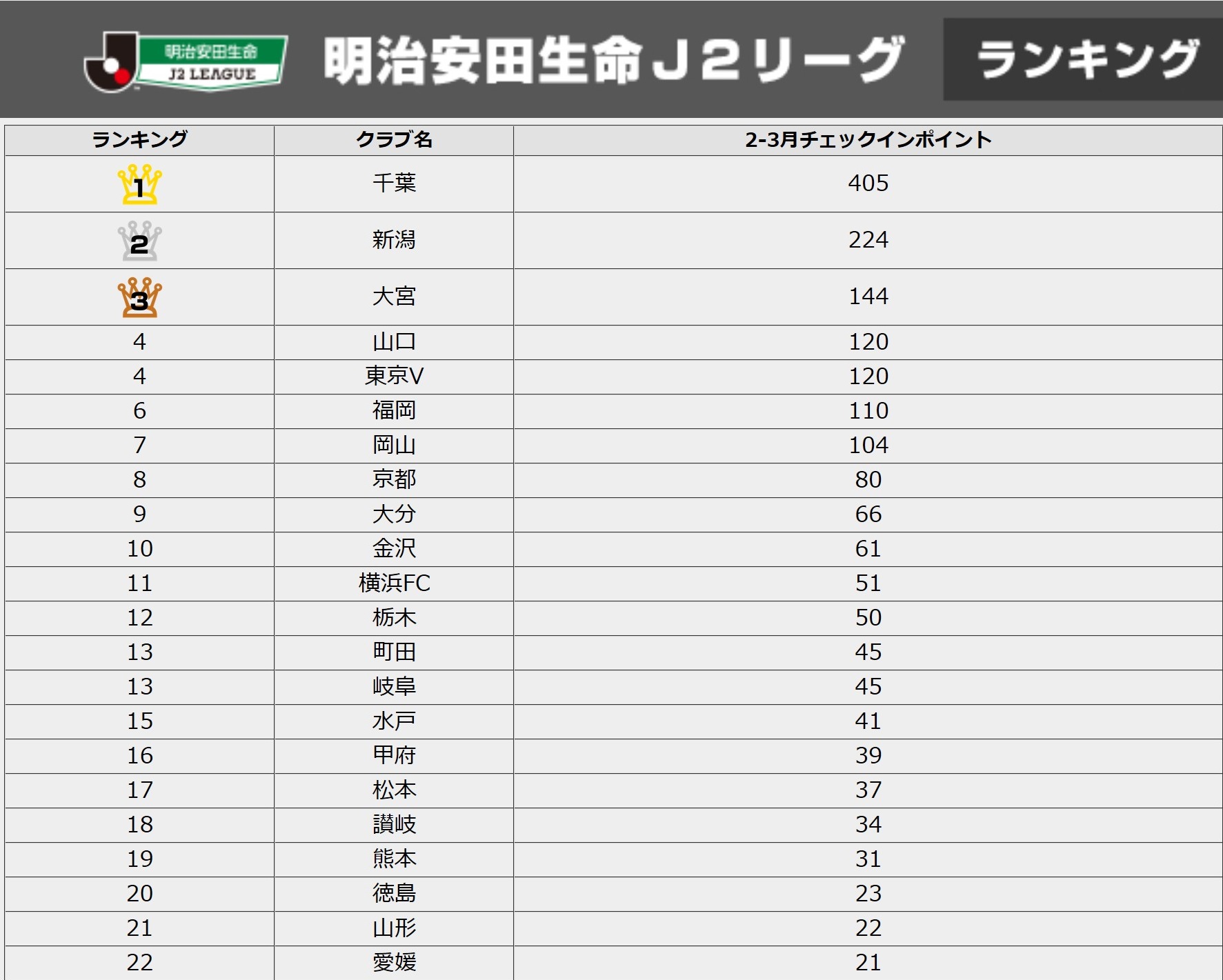 詳しくはアプリ内のキャンペーンページ(メニューから「チェックインバトル ランキング」を選択)や、J.LEAGUE.jpをご確認ください。