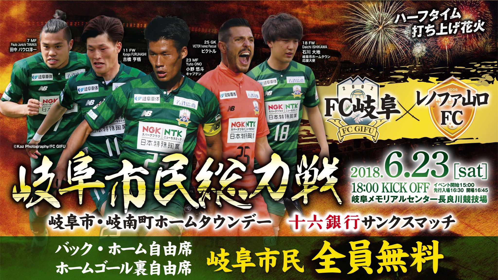 6/23(土)18:00vsレノファ山口FC、一般入場は16:45から