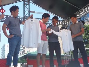 7月15日(日)JR岐阜駅前の問屋町一帯で開催された問屋エキスポにて、オフィシャルサプライヤーの岐阜シャツプロジェクト様よりクールビズシャツ「岐阜シャツ」の贈呈が行われました。