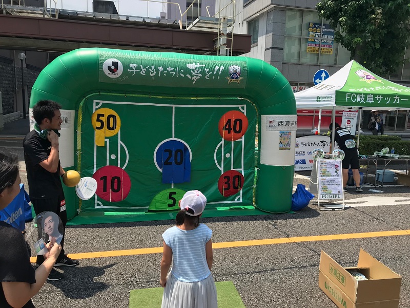 また、7月16日(月・祝)は同じく問屋エキスポにて、FC岐阜キックターゲットを実施。