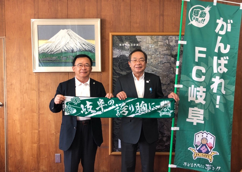 8月11日(土・祝)京都サンガF.C.戦(18時キックオフ) の「養老町ホームタウンデー」開催にあたり、8月2日(木)養老町役場にて、宮田博之社長が、大橋孝 養老町長を表敬訪問させて頂きました。