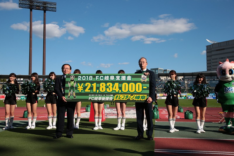 FC岐阜後援会(オレンターノ岐阜)から(株)岐阜フットボールクラブへの財政支援として2018シーズン後援会費より 21,834,000円〔(法人会員602口、個人会員3,666口分)の60%〕の支援をいただきました。ご支援ありがとうございました。