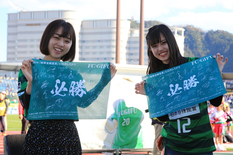 2018シーズン最終戦のアビスパ福岡戦には、FC岐阜応援マネージャーである伊藤寧々さん、FC岐阜アンバサダーの町音葉さんと祭nine.が来場!さらに平松伴康さん、久世良輔さんダブルスタジアムDJで会場を盛り上げてくれました!