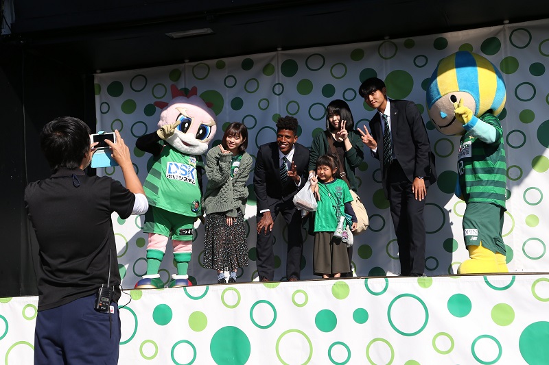 FC岐阜からはミシャエル選手と全山海選手。伊藤寧々さんとギッフィー・ミナモも参加しての記念撮影会を開催しました。
