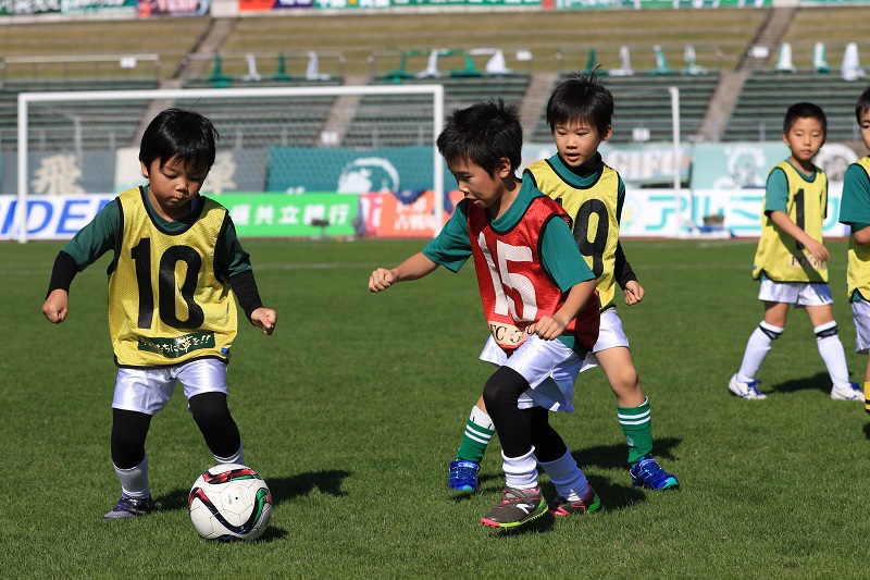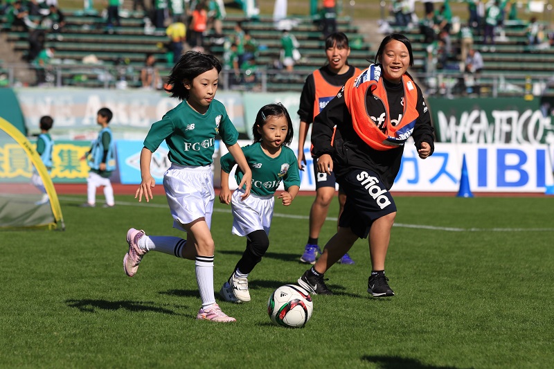 FC岐阜サッカースクールの子どもたちが長良川競技場のピッチで交流戦をおこないました。
