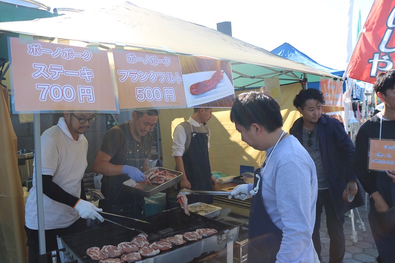 目の前で焼かれるボーノポークの良い香りに誘われ、多くの方で賑わっていました。