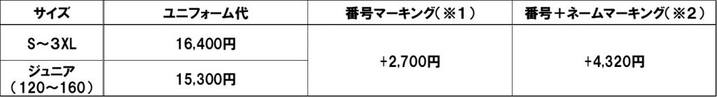 ご予約いただく際に、ユニフォーム料金のお支払いが必要となります。(クレジットカードの支払い可)