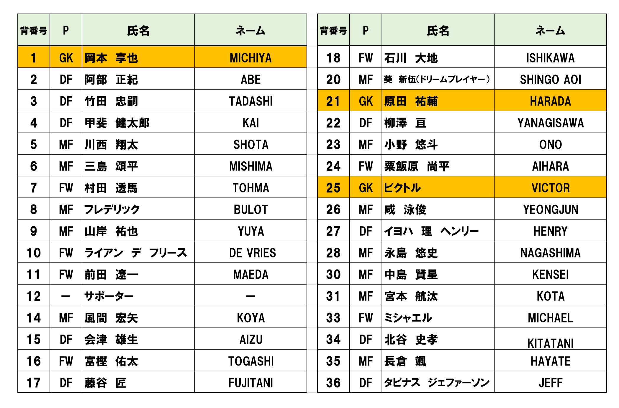 ・フィールドプレイヤーユニフォームにゴールキーパー選手の番号をマーキングすること、また、その逆は不可となります。