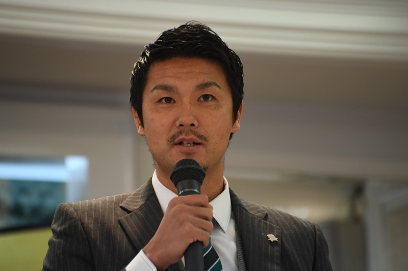 「この度、アシスタントコーチをさせて頂くことになりました山内智裕と申します。僕は2009年にFC岐阜で選手をさせていただき、この度ご縁があって、アシスタントコーチをさせていただくことになり、本当に感謝しています。また、新しいキャリアを、僕がプロで初めて入団させて頂いた岐阜でスタートできることをを本当に感謝しています。先ほど米田コーチが仰っていたように、ご縁があるなと思っています。また岐阜の一員として戦えることを本当に誇りに思いますし、僕自身初めての経験が多いと思うので、少しでもこのクラブに貢献できるように自分らしく、そして明るくやっていきたいと思いますので、どうぞよろしくお願いいたします。」
