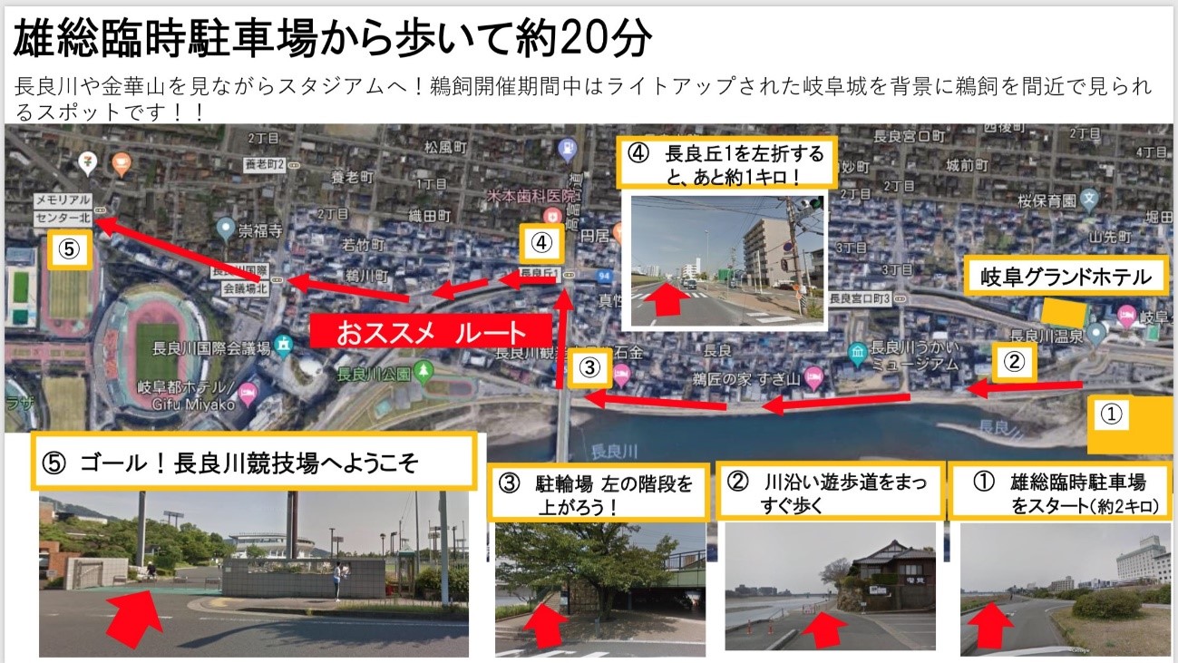 FC岐阜では、健康増進、維持のためホームゲーム開催会場である岐阜メモリアルセンター 長良川競技場への来場や長良川競技場周辺のウォーキングを推奨します。長良川競技場まで歩いて来場ができる方は歩いて、車で来場された方も、ぜひ長良川競技場周辺を歩いてみてください。