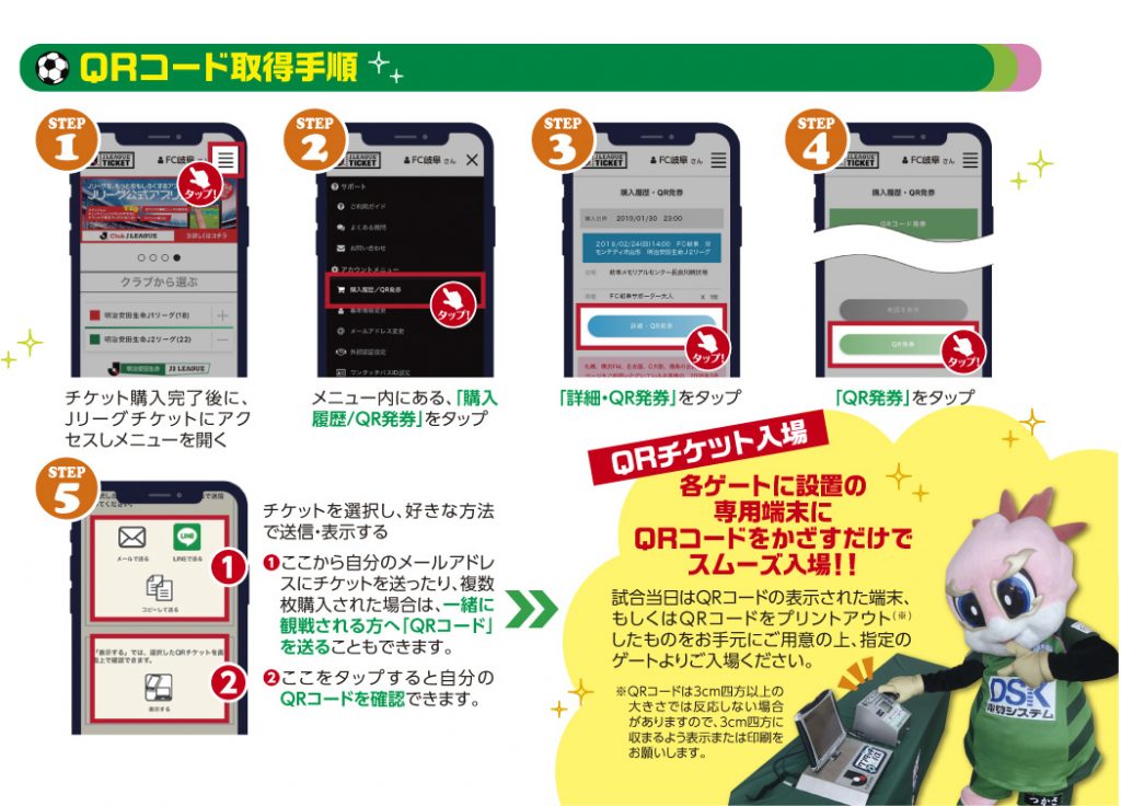・スムーズな入場のため、事前にJリーグチケットサイトメニューの「購入履歴/QR発券」よりご準備ください。