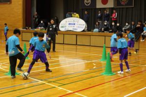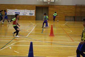 5年生はドリブルのメニューを実施し、チーム対抗でスピードを競う時には大きな歓声が上がっていました。