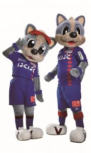 両クラブのマスコットが交流し、サポーターと触れ合うことでスタジアムを盛り上げます。