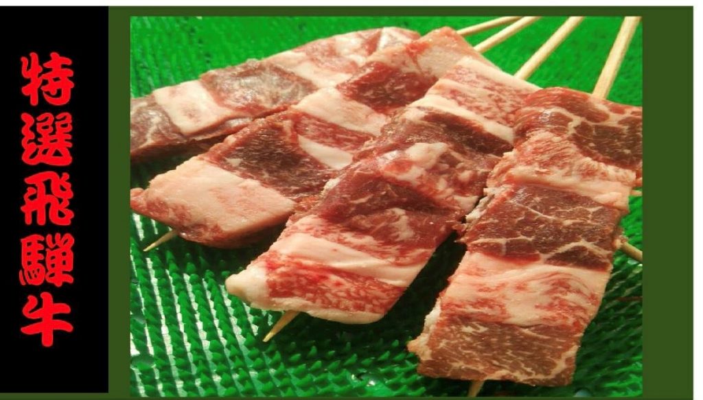 FC岐阜屋台村からオクトパスファイヤーズが出張出店。飛騨牛串をぜひご賞味ください。