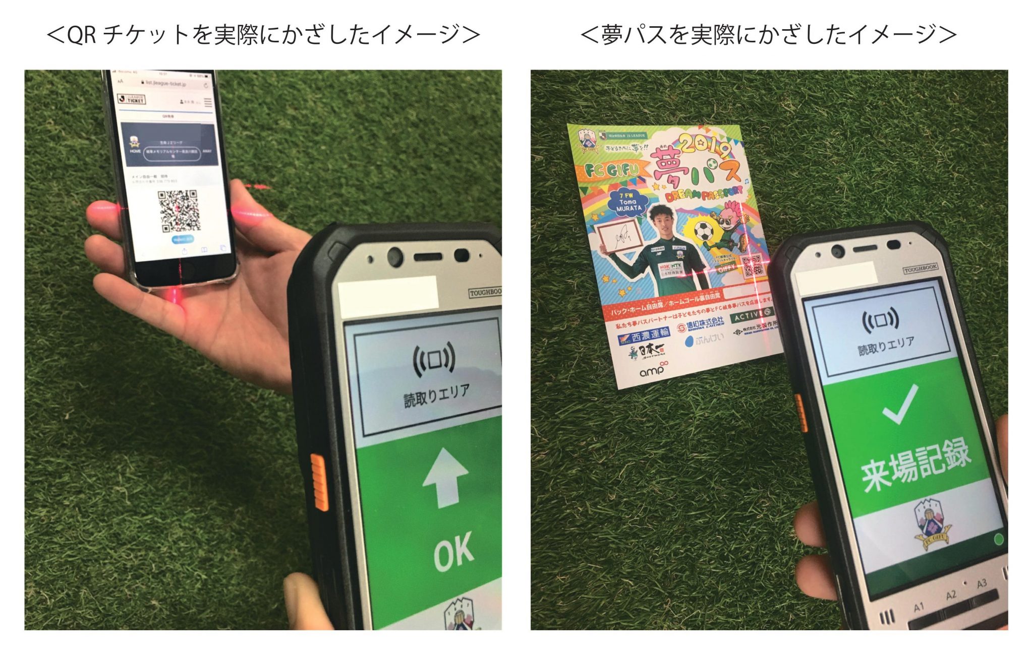 入場ゲートではスタッフが端末をかざしますので、QRコードもしくは夢パスの準備をお願いいたします。