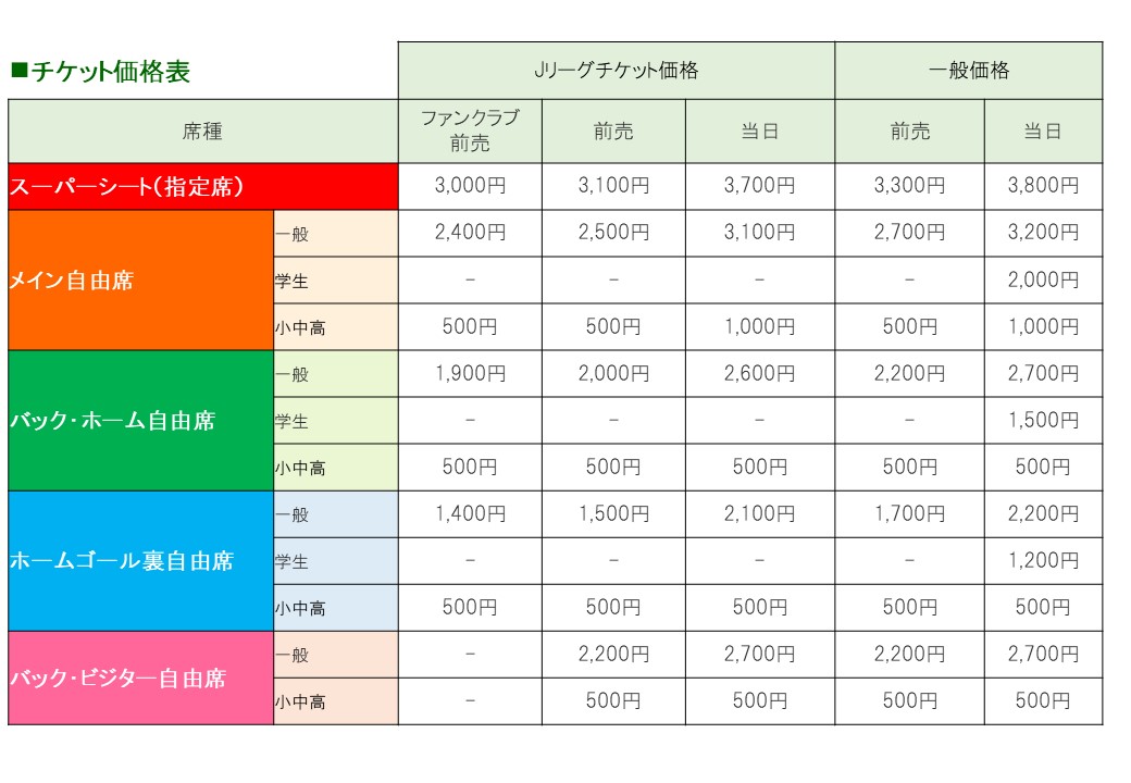 ※アウェイ側ホームゴール裏自由席はファミリーシート等の企画エリアとなり、芝生エリアのみの開放となります。個人での観戦は不可となりますので予めご了承ください。