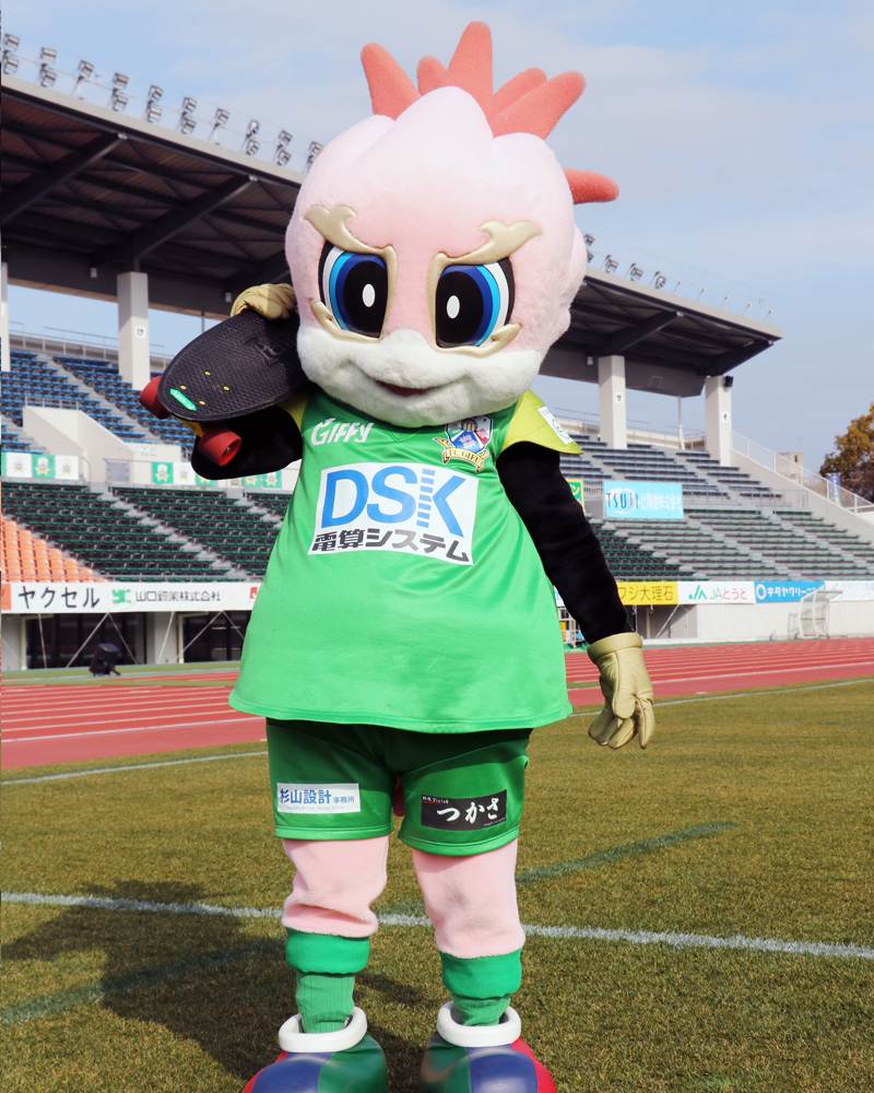 永島悠史選手、FC岐阜マスコットキャラクター「ギッフィー」