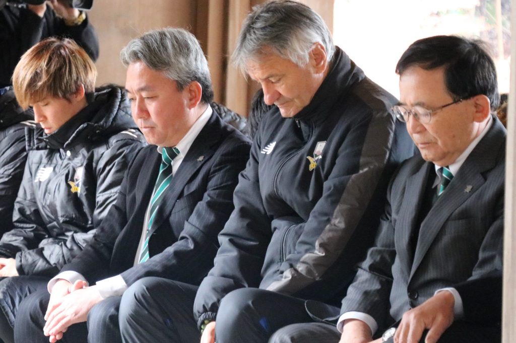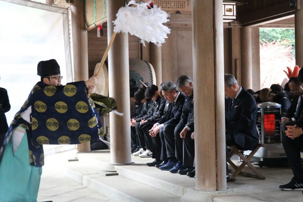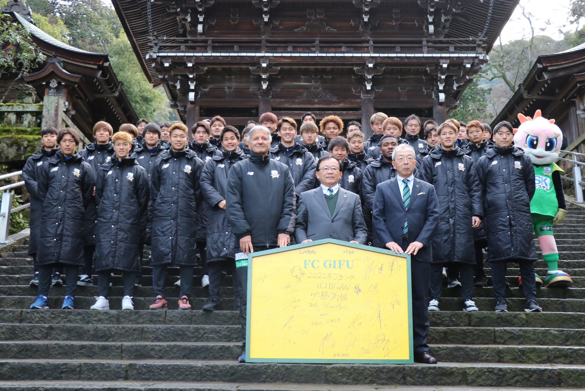 1月24日(金)岐阜市の伊奈波神社にて、FC岐阜後援会 岸野吉晃会長、宮田博之社長、ゼムノビッチ ズドラブコ監督、チームスタッフ、選手、フロントスタッフが今シーズンのチームの勝利と安全を祈願して、必勝祈願を執り行いました。