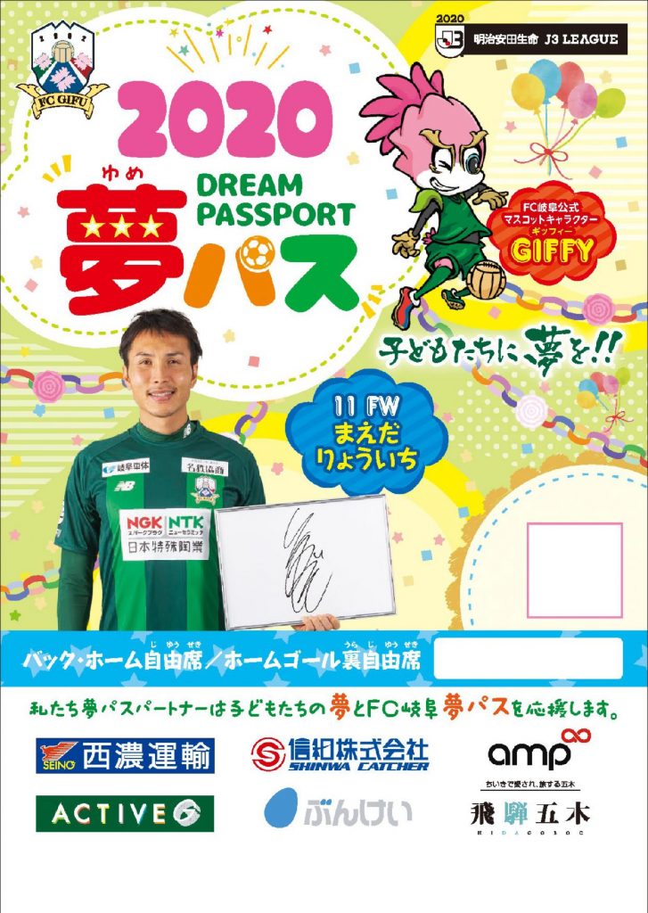 FC岐阜のクラブ理念「子どもたちに夢を!!」にご賛同いただいた夢パスパートナー企業様のご協力により、岐阜県内の小学生・未就学児の皆さんが2020明治安田生命J3リーグ戦<FC岐阜ホームゲーム>を全試合無料で観戦できる「夢のパスポート」です。