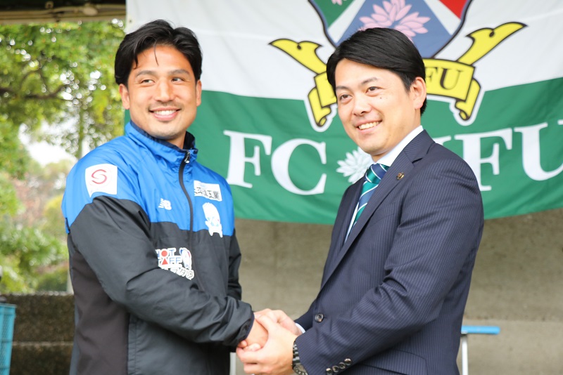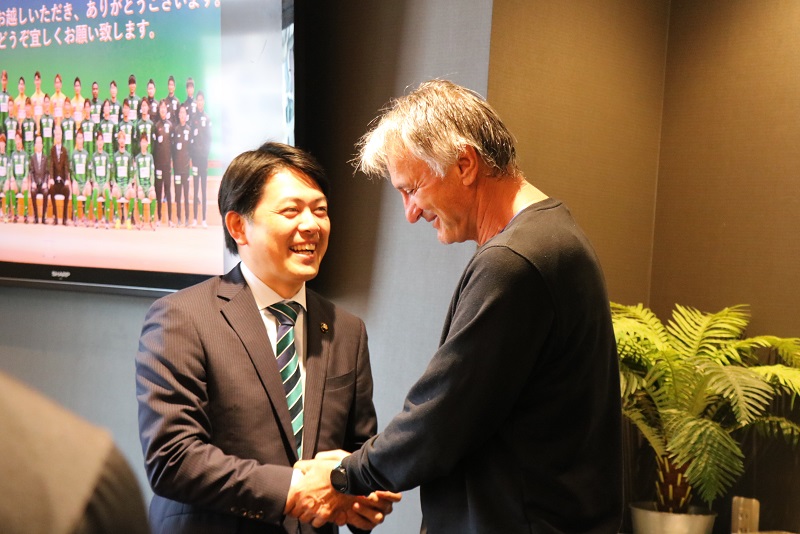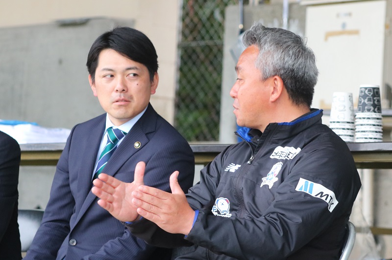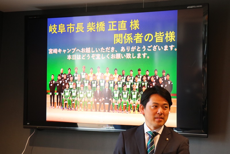 この日は岐阜市長の柴橋正直様が宮崎キャンプを初めて訪問され、昼食会場にて合流。監督・選手・チームスタッフへ激励の言葉をいただきました。