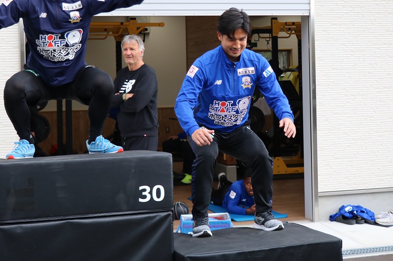 午前練習は宮崎県総合運動公園でフィジカルトレーニングが行われました。最終日ということで選手たちも笑顔で軽めの調整をしました。
