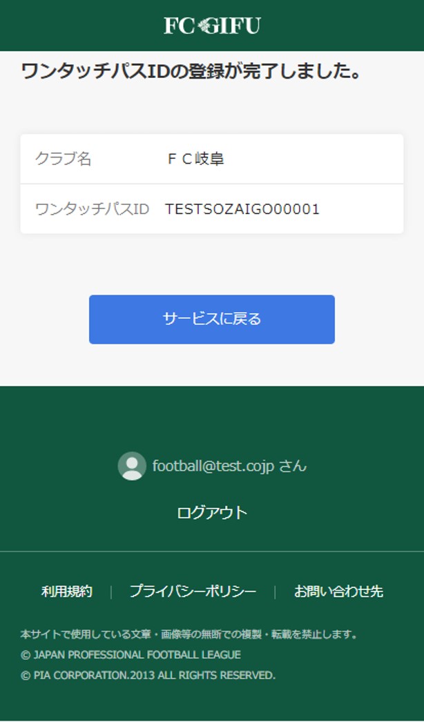 ※マイページにログインをした時点で、登録されているアドレスはJリーグID登録時のアドレスに変更されております。