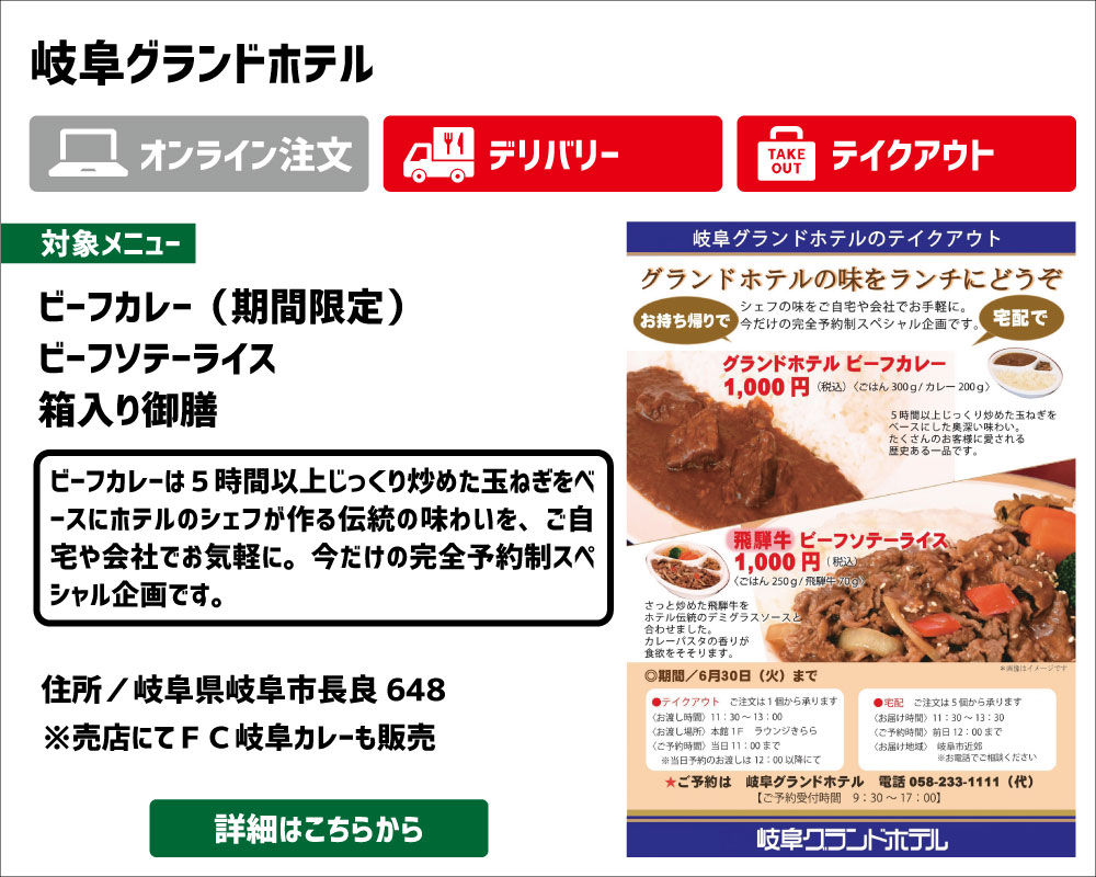 ウイルスの感染・蔓延防止のために不要不急の外出を控えている状況の中、FC岐阜では、スタジアムで楽しめる屋台村の人気の味や、スポンサー企業様の話題の商品などを、ファン・サポーターの皆様にご自宅でも楽しんで頂けるように、オフィシャルサイト内にて「FC岐阜オンライン屋台村」をオープンすることにいたしました。