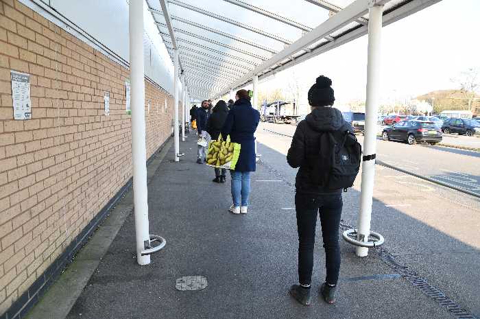 3/27 ロンドンのスーパーASDA。買占め防止ではなく店内での混雑を避けるため、人と人の距離が2mになるよう入場制限しています。待っている人たちも前後に2m空けるように並んでいます。品物は豊富にあります。