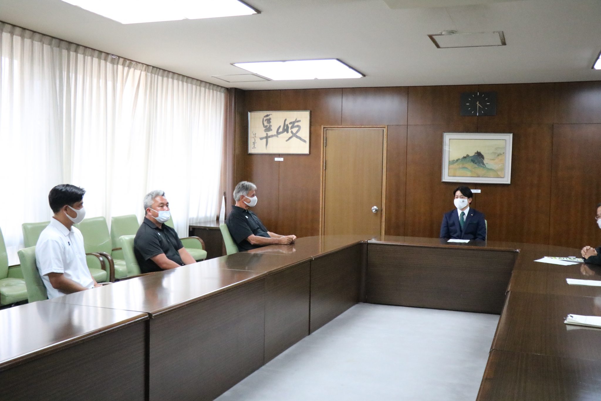 6月27日(土)の2020シーズン開幕戦を目前に控え、6月24日(水)岐阜市役所にて、ゼムノビッチ ズドラブコ 監督、宮田 博之 社長、木村 哲昌 チーム統括本部長、竹田 忠嗣 選手が、柴橋 正直 岐阜市長を表敬訪問させていただきました。