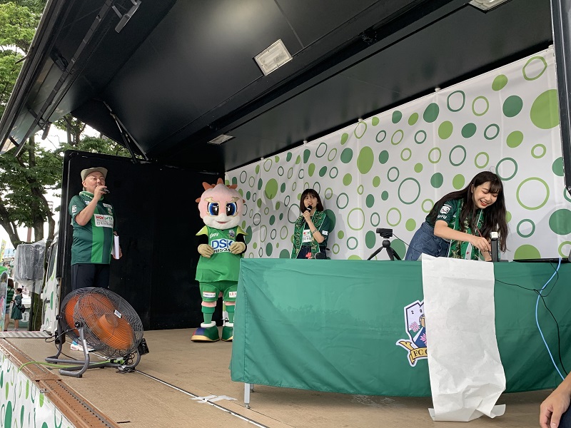 ステージでのトークショーや対決、ハーフタイムキャラバンや応援隊レポートなど、今シーズン初の有観客試合となる讃岐戦を盛り上げてくれました。