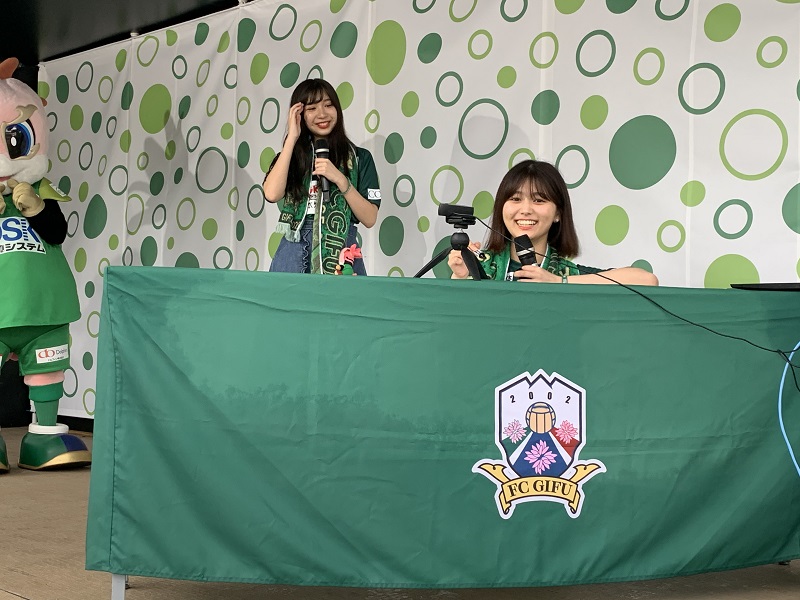 FC岐阜応援隊のSKE48から、隊長の北野瑠華さん・副隊長の太田彩夏さんが来場。
