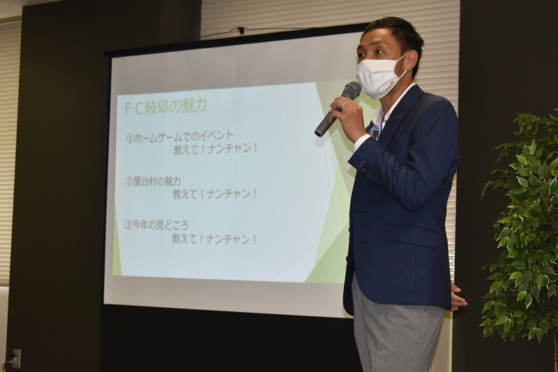 講演では、FC岐阜の魅力や今シーズンの見どころなどをお話させていただきました。