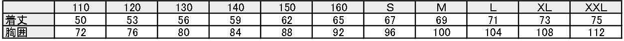 <返礼品レプリカユニフォーム サイズ表>