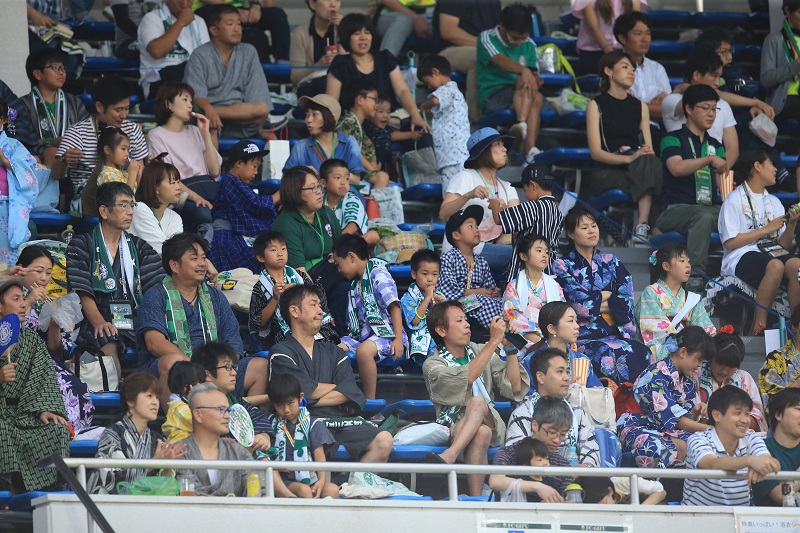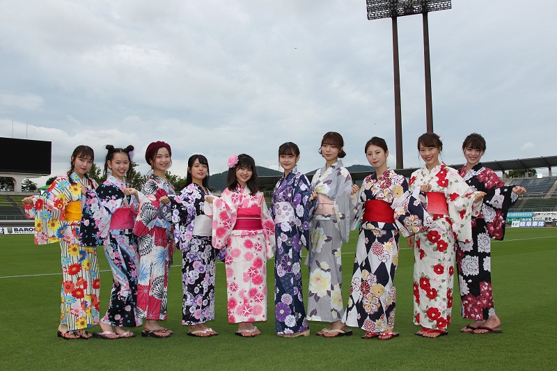 FC岐阜応援隊のSKE48から、北野瑠華さん、倉島杏実さん、青木詩織さん、荒野姫楓さんが浴衣姿で来場しスタジアムを盛り上げます。