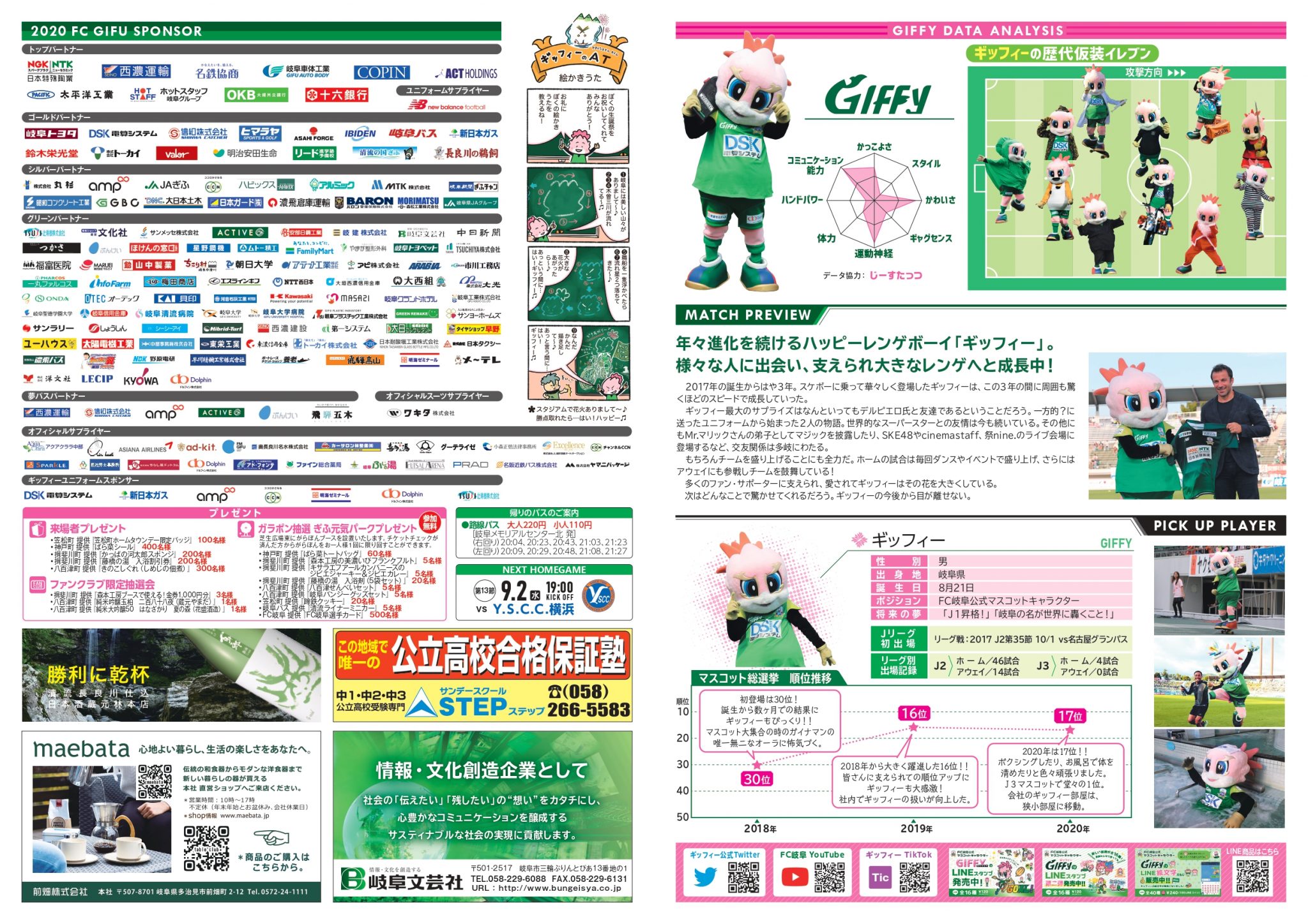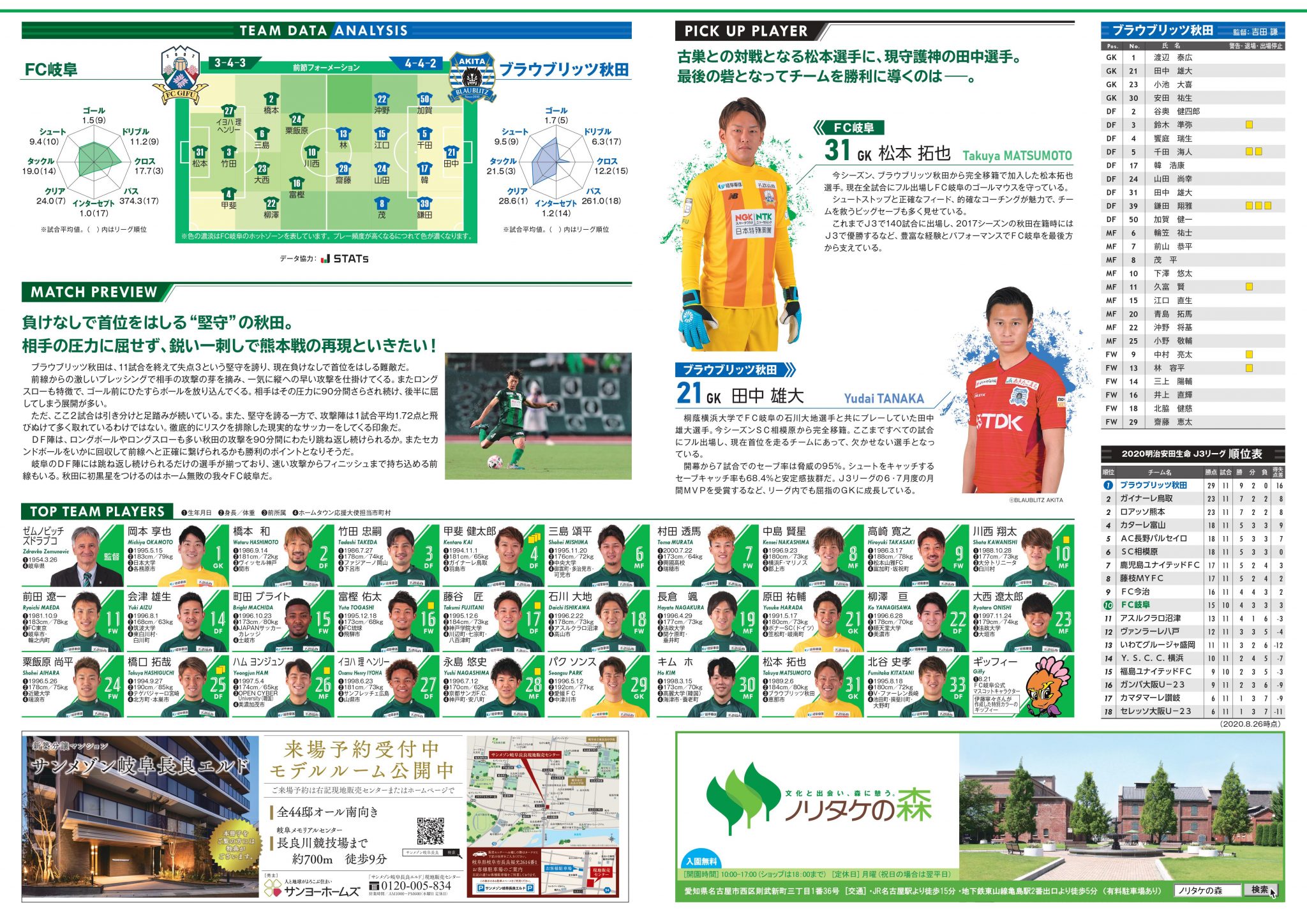2020.08.31 (Mon) お知らせ試合 【ギッフィーMDP更新】8/30(日)ブラウブリッツ秋田戦 マッチデープログラム公開 8月30日(日)ブラウブリッツ秋田戦のマッチデープログラムをHPにて公開いたしました。 明日の試合を前にぜひご覧下さい。 ≫第12節のマッチデープログラム
