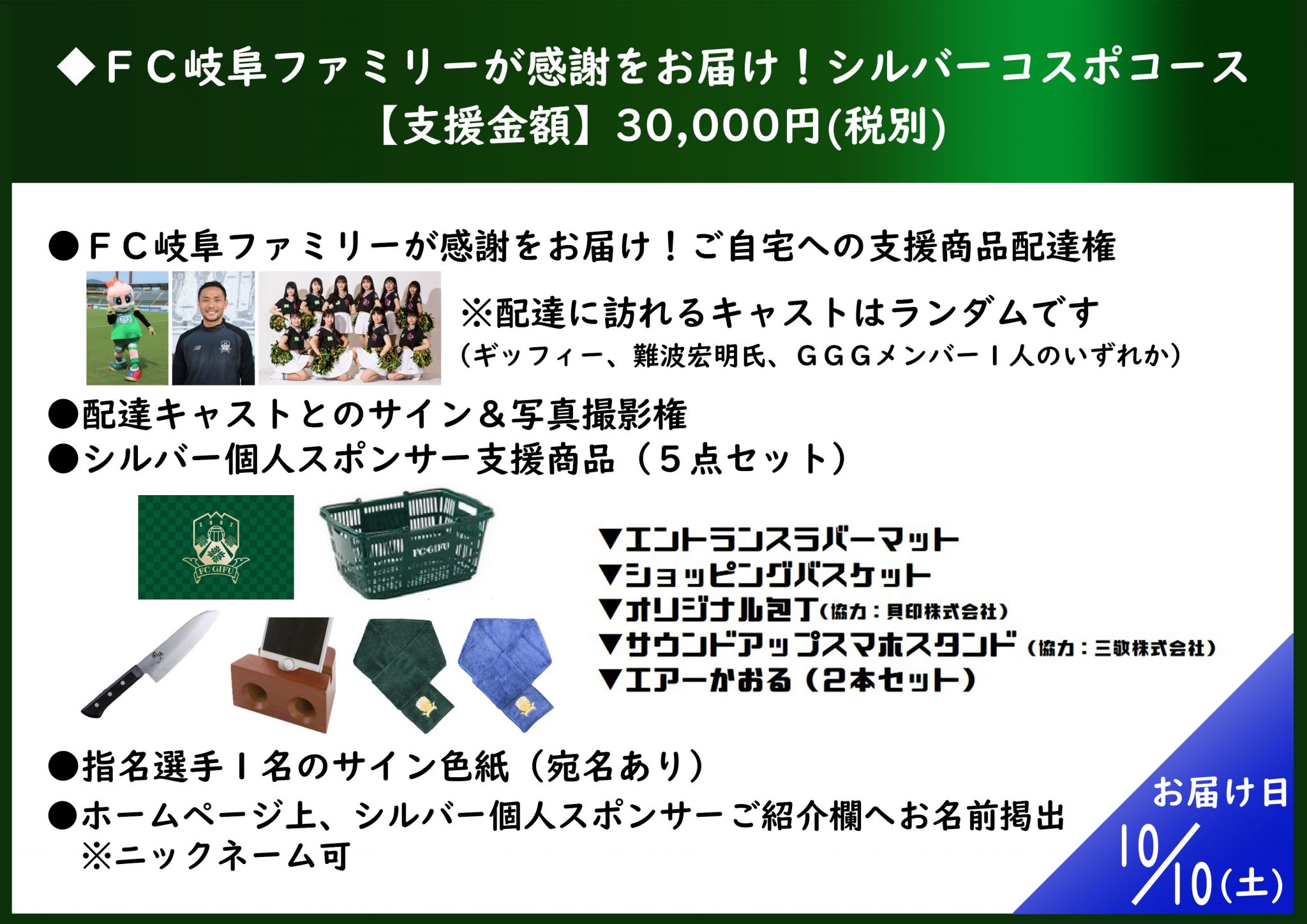 ◆FC岐阜ファミリーが感謝をお届け!シルバーコスポコース お申し込みはこちら(受付を終了いたしました)