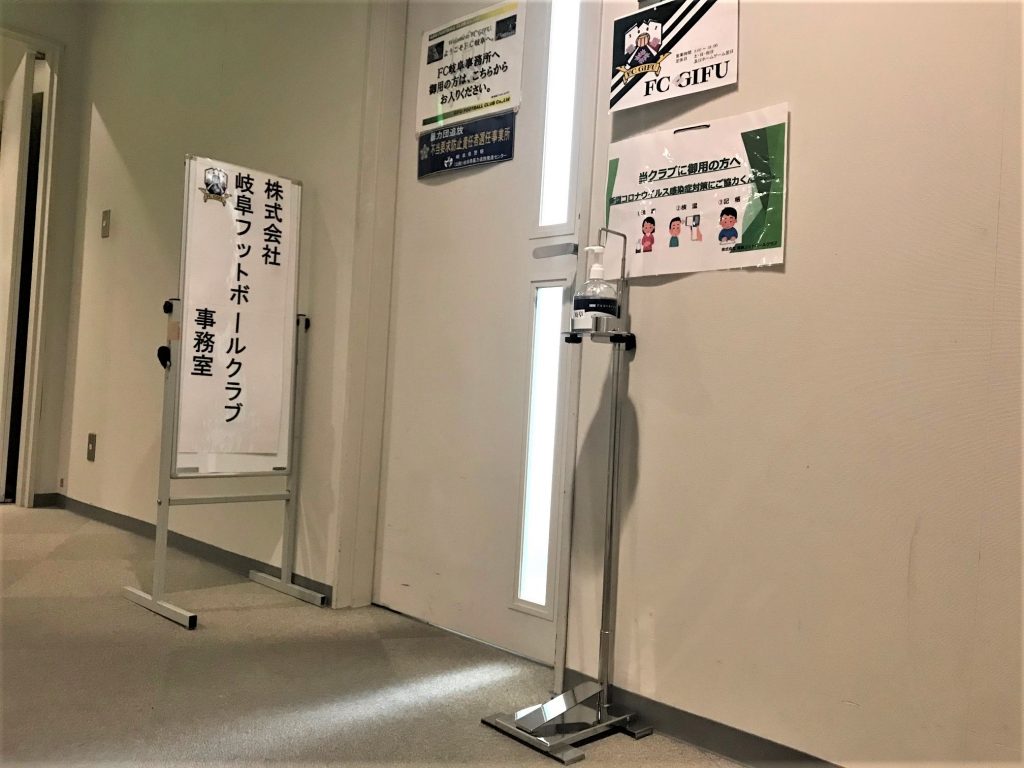 今回ご寄贈いただきました足踏み式消毒スタンドは、FC岐阜事務所やホームゲームの際に活用させて頂いております。