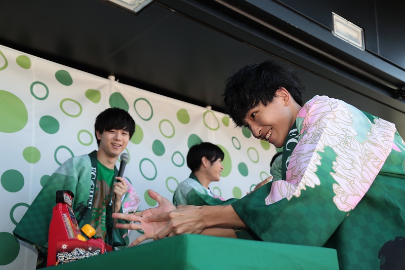 さらにステージでは、デコピンマシンでデコピンの強さを競いました。