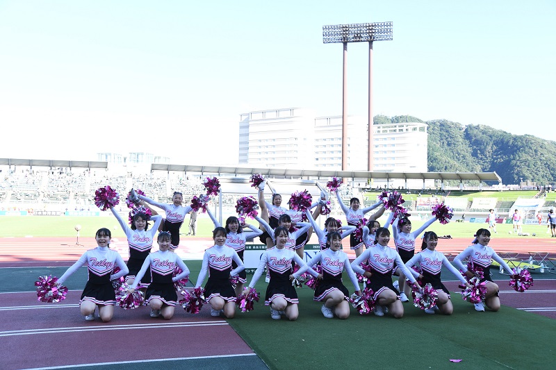 コパン多治見南・帝京可児チアチームに、ステージやスタジアムで華やかなチアパフォーマンスを披露していただきました。