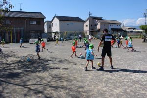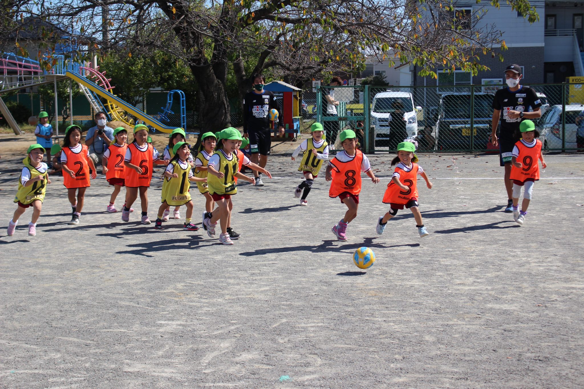 10月12日(月)及び14日(水)に、羽島市にある羽島市立西部幼稚園にて、羽島市教育委員会主催の「羽島市サッカー教室」が開催されました。