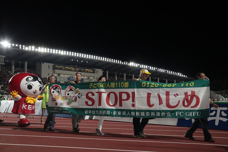FC岐阜では、Jリーグ加盟当初より人権啓発運動として、選手による各地でのPRやサッカー教室、コラボノベルティの作成、スタジアム内告知や作文コンテストの後援など、岐阜地方法務局・岐阜県人権擁護委員連合会の皆さまと協力しながら様々な取り組みをおこなってきました。