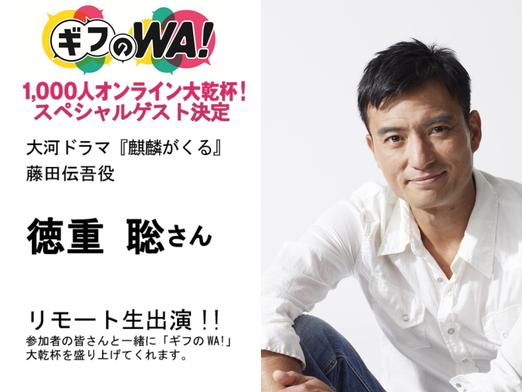 18:00:~20:00 「1,000人オンライン大乾杯!」 スペシャルゲストが藤田伝吾役の徳重聡さんに決定!