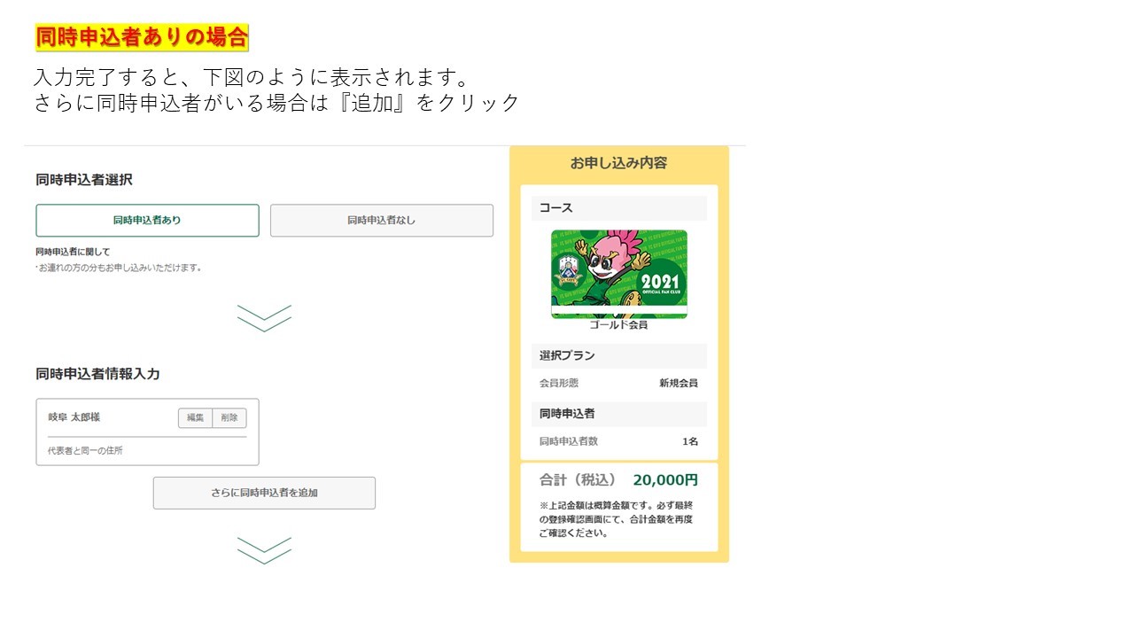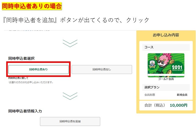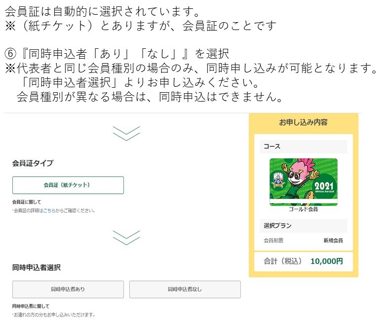 代表者と同じ会員グレードの場合のみ、同時申し込みが可能となります。