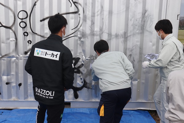 約30分の作業で、2つのコンテナに書かれた落書きを綺麗に消すことができました。