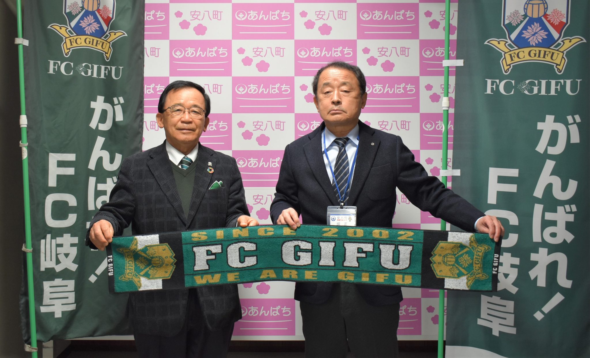 また、安八町の方500名様が無料で観戦できる「感動をともにチケット」のご案内もさせていただき、ぜひ多くの方にスタジアムにご来場いただきまして、選手に応援をいただけますよう、堀町長にお願い申し上げました。