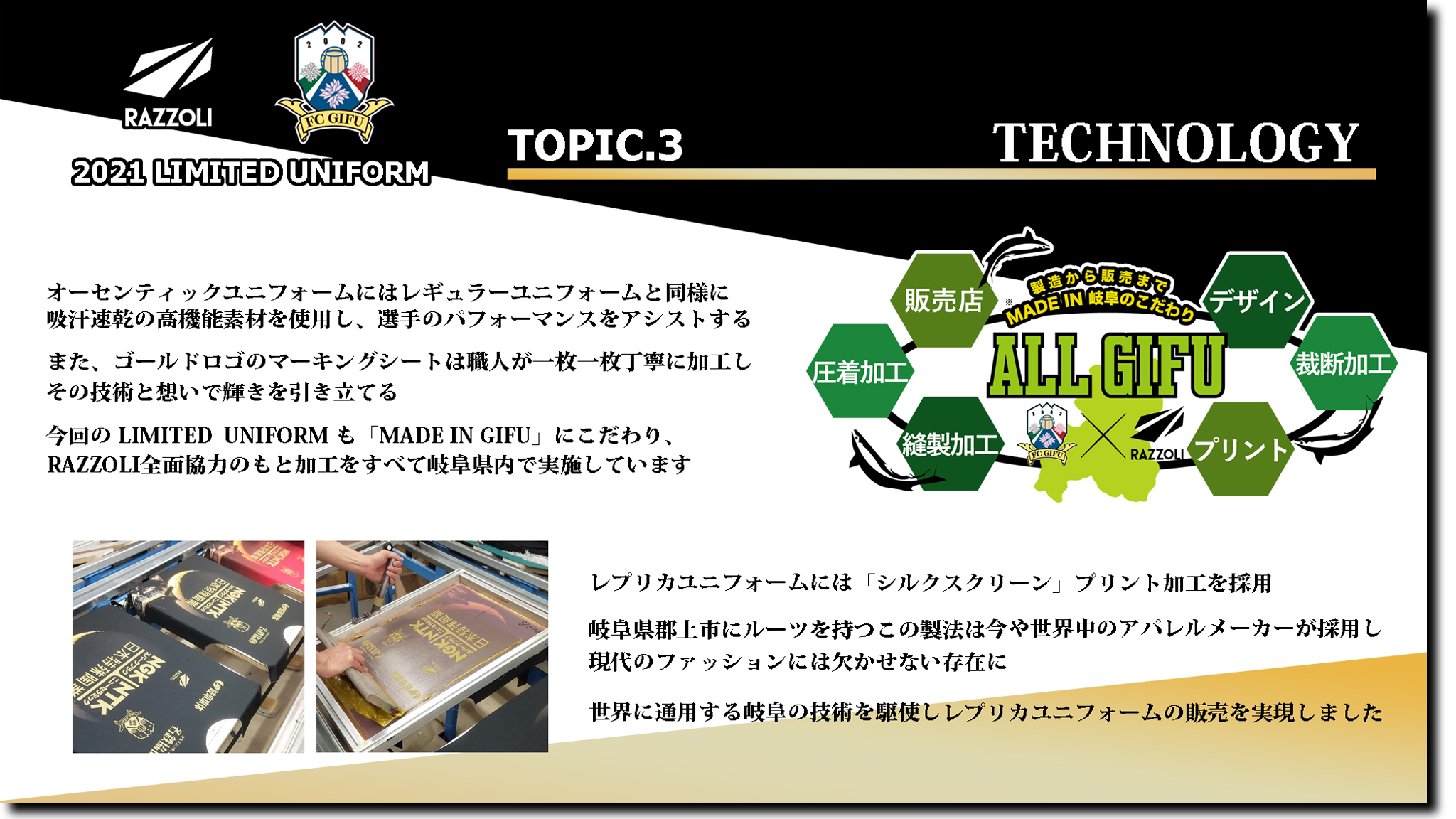 RAZZOLI全面協力のもと「MADE IN GIFU」にこだわりながらも、ご要望の多かったオーセンティックユニフォームとレプリカユニフォームの2種類を販売可能にしました。