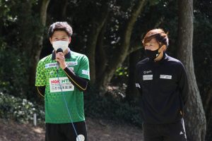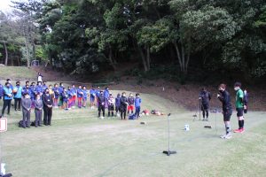フットゴルファーを代表して、高波瀬史人選手がご挨拶させていただました。高波瀬選手は「この素晴らしい静岡カントリー様でフットゴルフが楽しめるということで大変嬉しく思います。多くの方にフットゴルフを楽しんでいただきたいと思います。」