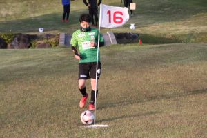 セレモニー終了後に招待されたフットゴルファーの皆さんが順番にスタートしていきました。