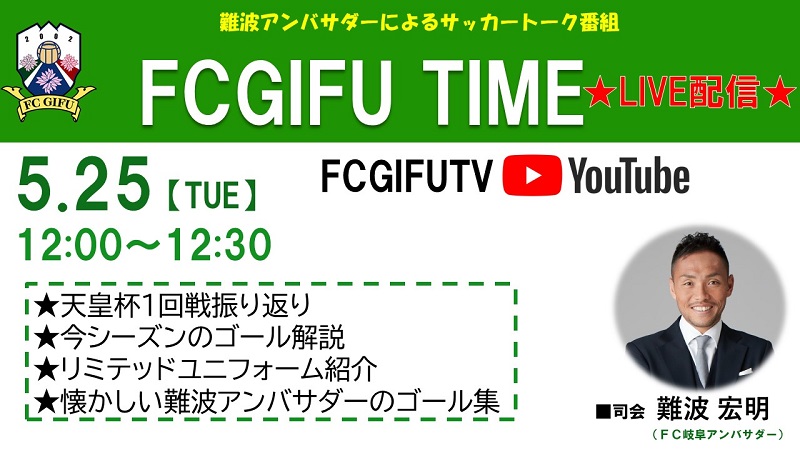 5/25(火)「FCGIFU TIME」ライブ配信のお知らせ