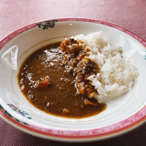 たまねぎを飴色になるまで炒めて、とろけて形が無くなるまで一日かけてじっくり煮込んで、スパイシーな辛さの中にもコクのある甘みを生み出したオリジナルフォンドヴォーとの絶妙なバランスが自慢の、完成までまる2日かけたホテルのカレーライスです。